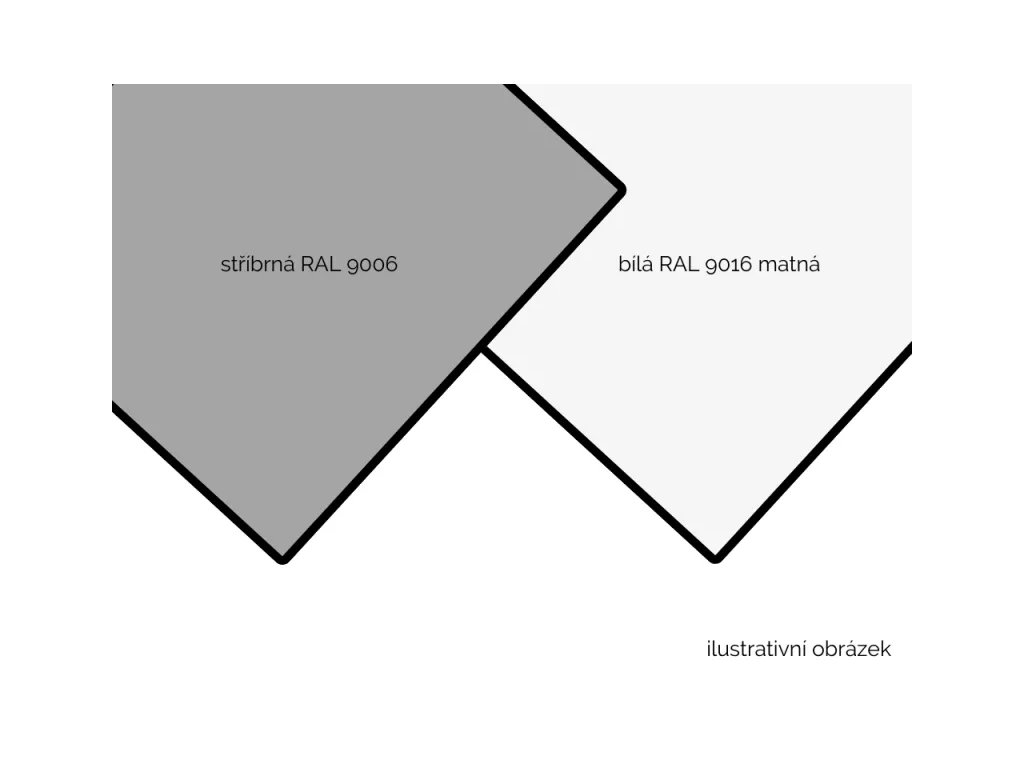 Barva z jedné strany stříbrná RAL 9006, z druhé strany matná bílá RAL9016 (obě kryty ochrannou folií). Krycí plech z každé strany má tloušťku 0,12 mm. Celková tloušťka desky 3 mm.