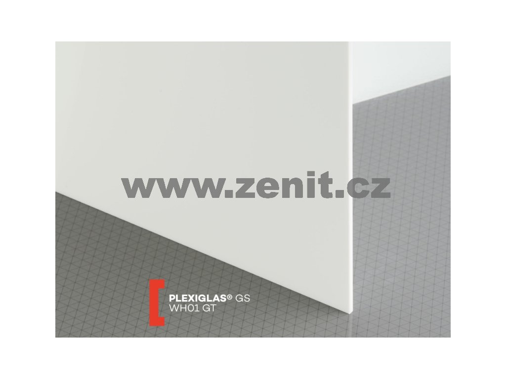 Lité akrylátové sytě bílé desky Plexiglas WH01 s propustností světla 3% v tloušťce 10 mm. Jedná se o velmi kvalitní druh plexiskla, materiál je vysoce odolný proti UV záření a povětrnostním vlivům. Obě povrchové strany těchto desek z plexiskla jsou hladké a vysoce lesklé, dodávané s ochrannou folií. Široké použití v reklamě, stavebnictví a průmyslu. Výroba litím znamená, že materiál se naleje mezi dvě skleněné desky a v peci postupně chládne. Tímto získává menší vnitřní pnutí, avšak větší tloušťkovou toleranci než extrudované plexisklo.