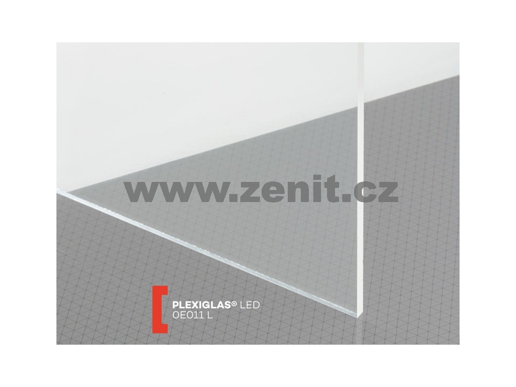 Plexiglas LED 0E011 typ L v tl. 6 mm pro nasvětlování LED diodami - dřívější označení EndLighten. Desky jsou speciálně vyvinuty především pro světelnou reklamu; materiál je vysoce odolný proti UV záření a povětrnostním vlivům. Poskytujeme 10-letou záruku a navíc 30-letou záruku na nežloutnutí na čiré desky. Obě povrchové strany těchto desek z plexiskla jsou hladké a vysoce lesklé, při dodávce jsou kryty silnou ochrannou folií. Široké použití v reklamě, nábytkářství či designu.