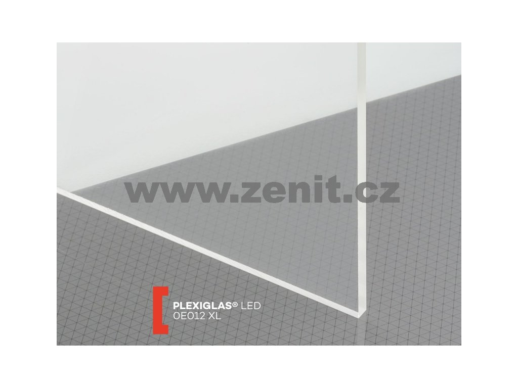 Světlovodivé plexisklo desky Plexiglas LED typ 0E012 XL v tl. 8 mm pro nasvětlování LED diodami - dřívější označení EndLighten. Desky jsou speciálně vyvinuty především pro světelnou reklamu; materiál je vysoce odolný proti UV záření a povětrnostním vlivům. Poskytujeme 10-letou záruku a navíc 30-letou záruku na nežloutnutí na čiré desky. Obě povrchové strany těchto desek z plexiskla jsou hladké a vysoce lesklé, při dodávce jsou kryty silnou ochrannou folií. Široké použití v reklamě, nábytkářství či designu.