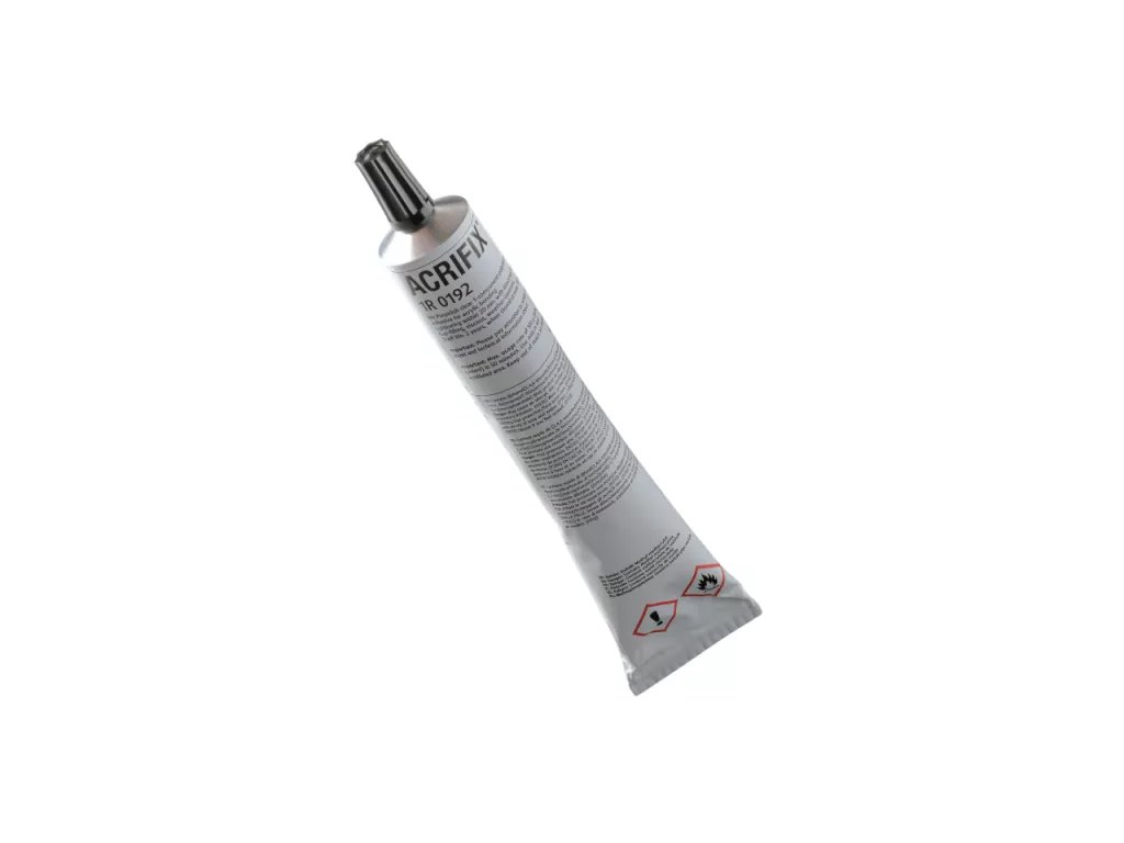 Lepidlo ACRIFIX® 1R 0192 je polymerové transparentní lepidlo s načervenalým odstínem, lepící roztok akrylátového polymeru v metakrylátu metylu, který je vytvrzován denním světlem. Druhou složkou tohoto lepidla je tedy světlo obsahující UV záření (zářivka, denní světlo). Určeno pouze pro čiré plexisklo!