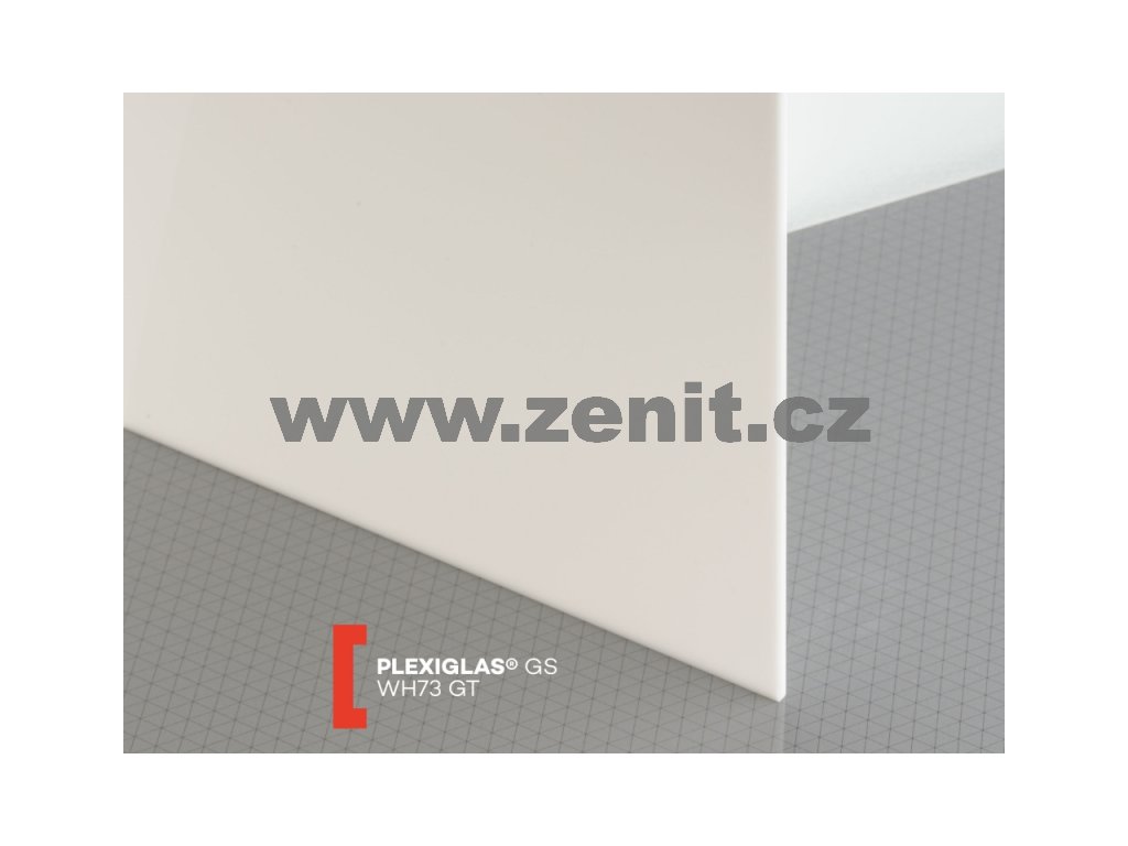 Lité mléčné - opálové plexisklo Plexiglas GS WH73 s propustností světla cca 23% v tloušťce 3 mm. Jedná se o velmi kvalitní druh plexiskla, materiál je vysoce odolný proti UV záření a povětrnostním vlivům. Obě povrchové strany těchto desek z plexiskla jsou hladké a vysoce lesklé, dodávané s ochrannou folií. Široké použití v reklamě, stavebnictví a průmyslu. Výroba litím znamená, že materiál se naleje mezi dvě skleněné desky a v peci postupně chládne. Tímto získává menší vnitřní pnutí, avšak větší tloušťkovou toleranci než extrudované plexisklo.