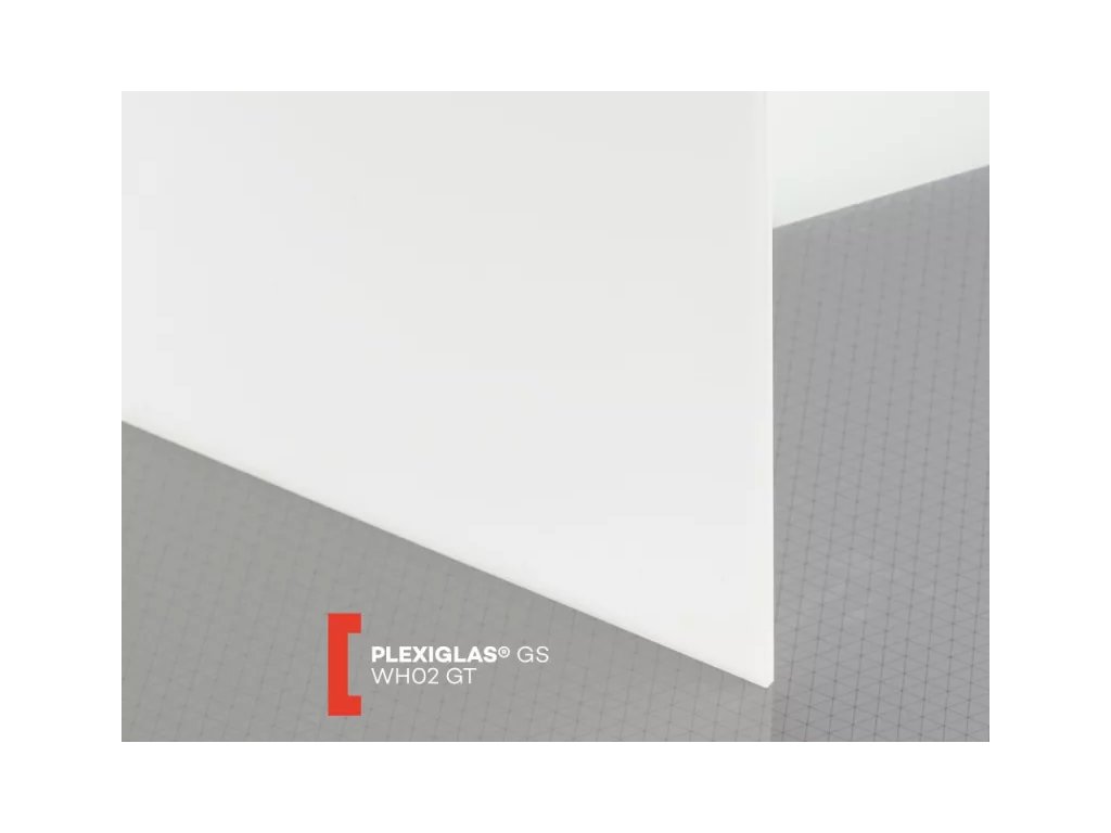 Opálové mléčné plexisklo Plexiglas GS WH02 s propustností světla cca 44% v tloušťce 8 mm. Jedná se o velmi kvalitní druh plexiskla, materiál je vysoce odolný proti UV záření a povětrnostním vlivům. Obě povrchové strany těchto desek z plexiskla jsou hladké a vysoce lesklé, dodávané s ochrannou folií. Široké použití v reklamě, stavebnictví a průmyslu. Výroba litím znamená, že materiál se naleje mezi dvě skleněné desky a v peci postupně chládne. Tímto získává menší vnitřní pnutí, avšak větší tloušťkovou toleranci než extrudované plexisklo.