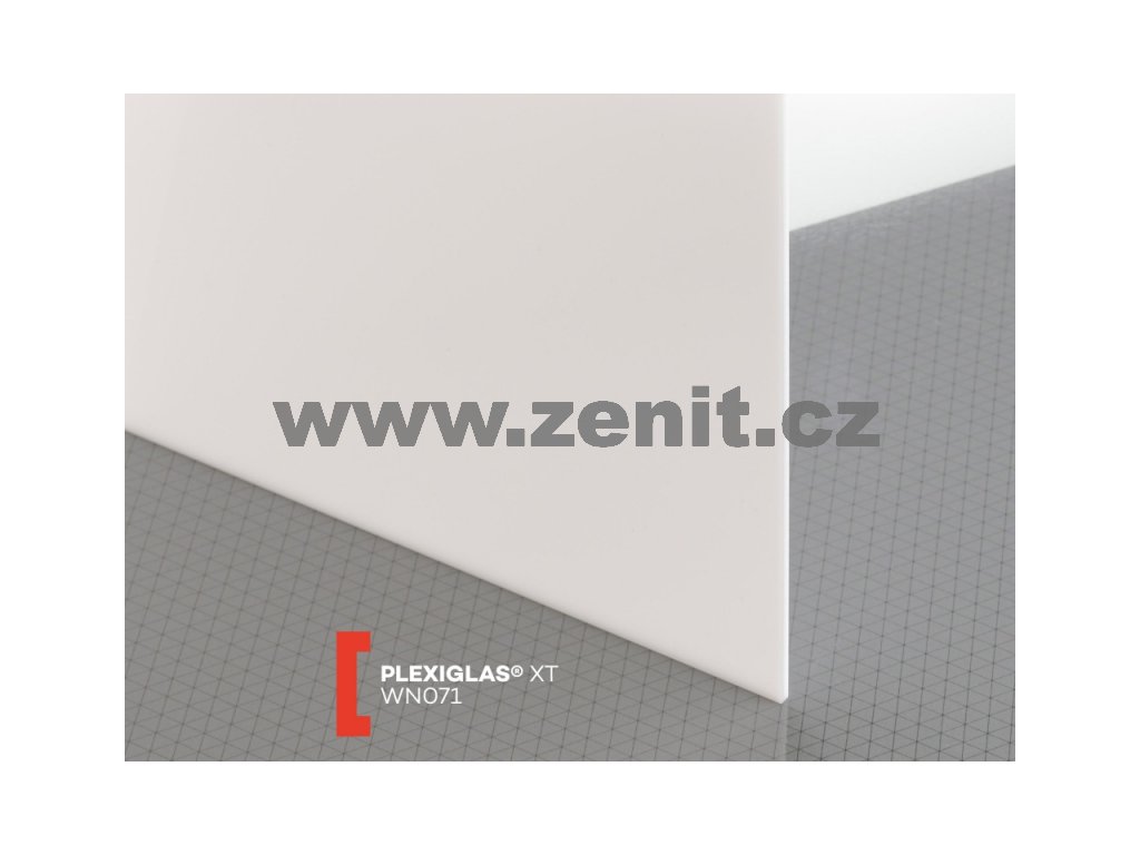 Opálově mléčné akrylátové desky Plexiglas WN071 s propustností světla cca 30% v tloušťce 3 mm. XT je základní a nejrozšířenější typ plexiskla. Materiál je vysoce odolný proti UV záření a povětrnostním vlivům. Obě povrchové strany těchto desek z plexiskla jsou hladké a vysoce lesklé, dodávané s ochrannou folií. Široké použití v reklamě, stavebnictví a průmyslu. Výroba extruzí znamená, že desky jsou tzv. vytlačované mezi dvěma proti sobě rotujícími válci. Z tohoto důvodu má tento typ plexi větší vnitřní pnutí, než lité plexisklo Plexiglas GS. Má malou tloušťkovou toleranci.