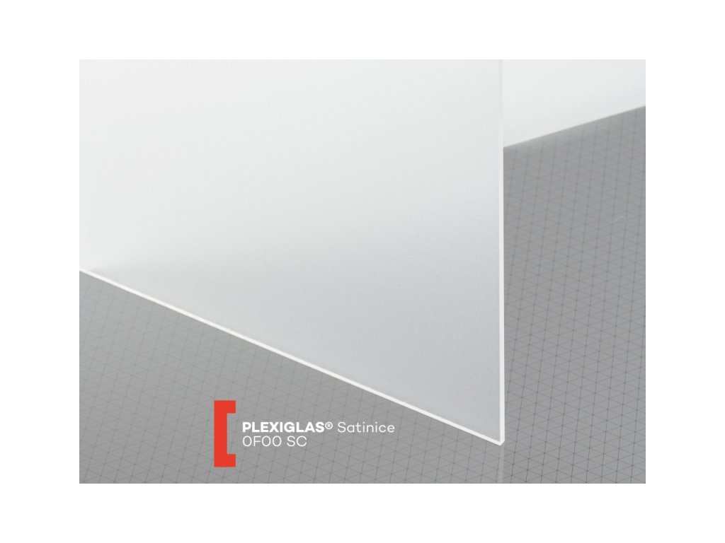 0F00 SC je čiré, jednostranně pískované plexisklo značky Plexiglas SATINICE v tloušťce 3 mm. Desky jsou určené mj. pro nasvětlení s optimálním rozptylem světla. Materiál je UV-nepropustný, vysoce odolný proti UV záření a povětrnostním vlivům, poskytujeme 10-letou záruku na stálost fyzikálních vlastností. Obě povrchové strany těchto desek z plexiskla jsou kryty ochrannou folií. Široké použití v reklamě, nábytkářství, designu... K tomuto typu desek dodáváme speciální lepidlo Acrifix 195, které po zaschnutí není lesklé, ale vytváří dojem opískování.
