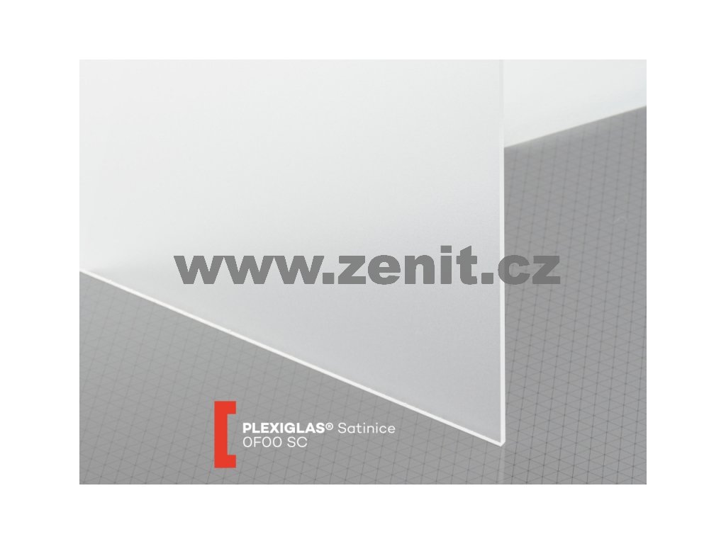 0F00 SC je čiré, jednostranně pískované plexisklo značky Plexiglas SATINICE v tloušťce 5 mm. Desky jsou určené mj. pro nasvětlení s optimálním rozptylem světla. Materiál je UV-nepropustný, vysoce odolný proti UV záření a povětrnostním vlivům, poskytujeme 10-letou záruku na stálost fyzikálních vlastností. Obě povrchové strany těchto desek z plexiskla jsou kryty ochrannou folií. Široké použití v reklamě, nábytkářství, designu... K tomuto typu desek dodáváme speciální lepidlo Acrifix 195, které po zaschnutí není lesklé, ale vytváří dojem opískování.