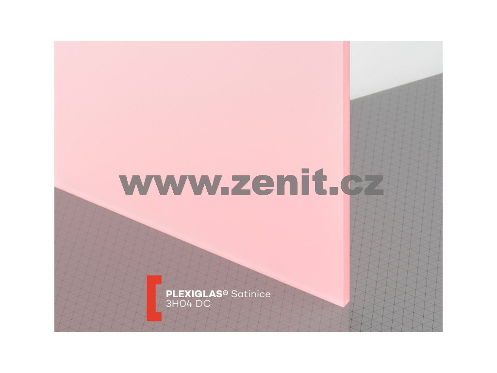 3H04 DC je melounově červené (až růžové) průsvitné oboustranně pískované plexisklo značky Plexiglas SATINICE v tloušťce 6 mm s propustností světla cca 52%. Desky jsou určené mj. pro nasvětlení s optimálním rozptylem světla. Materiál je UV-nepropustný, vysoce odolný proti UV záření a povětrnostním vlivům, poskytujeme 10-letou záruku na stálost fyzikálních vlastností. Obě povrchové strany těchto desek z plexiskla jsou kryty ochrannou folií. Široké použití v reklamě, nábytkářství, designu... K tomuto typu desek dodáváme speciální lepidlo Acrifix 195, které po zaschnutí není lesklé, ale vytváří dojem opískování.