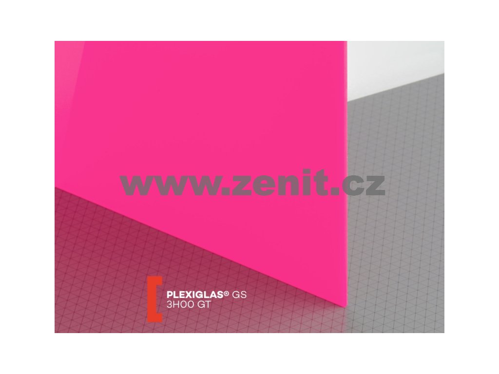 Lité neprůhledné (průsvitné) růžové plexisklo tloušťky 3 mm Plexiglas GS 3H00 s propustností světla cca 11%. Jedná se o velmi kvalitní druh plexiskla, materiál je vysoce odolný proti UV záření a povětrnostním vlivům. Obě povrchové strany těchto desek z plexiskla jsou hladké a vysoce lesklé, dodávané s ochrannou folií. Široké použití v reklamě, stavebnictví a průmyslu. Výroba litím znamená, že materiál se naleje mezi dvě skleněné desky a v peci postupně chládne. Tímto získává menší vnitřní pnutí, avšak větší tloušťkovou toleranci než extrudované plexisklo.