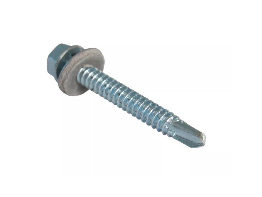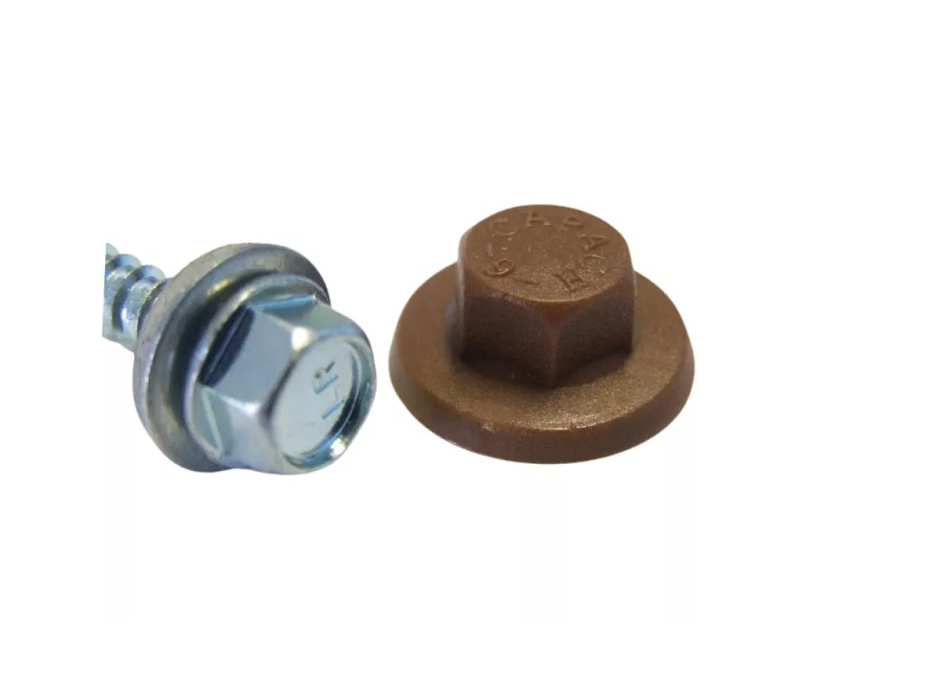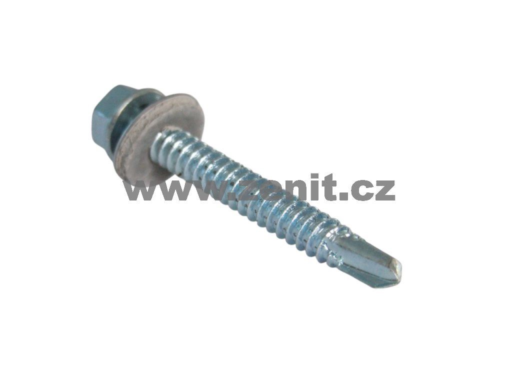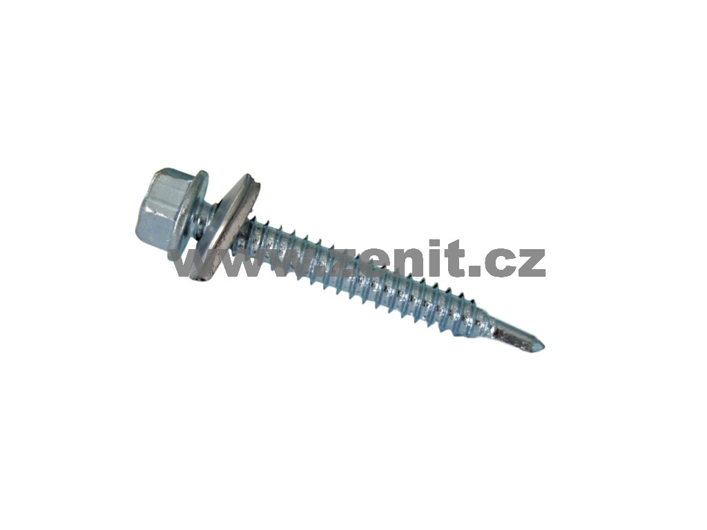 Samovrtný šroub do oceli se šestihrannou hlavou (10 mm), s okroužkem, dodáván včetně podložky VG 16. Dřík prům. 6,3 mm; délka 50 / 75 mm. Vyroben ze zušlechtěné oceli, pozinkovaný. Pevnost v tahu na dřík šroubu: 900 N/m2. Je možné dokoupit krycí čepičku v různých barvách. Tyto šrouby se nehodí pro šroubování přítlačných terčíků.