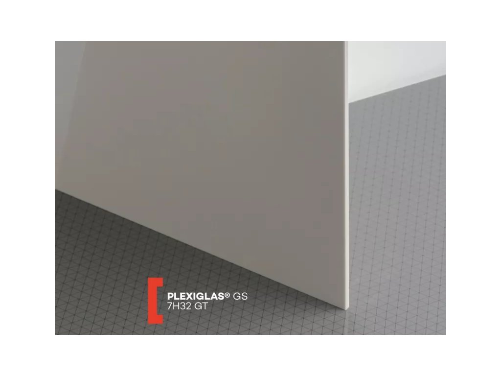 Lité šedé neprůhledné plexi desky tloušťky 3 mm Plexiglas GS 7H32. Jedná se o velmi kvalitní druh plexiskla, materiál je vysoce odolný proti UV záření a povětrnostním vlivům. Obě povrchové strany těchto desek z plexiskla jsou hladké a vysoce lesklé, dodávané s ochrannou folií. Široké použití v reklamě, stavebnictví a průmyslu. Výroba litím znamená, že materiál se naleje mezi dvě skleněné desky a v peci postupně chládne. Tímto získává menší vnitřní pnutí, avšak větší tloušťkovou toleranci než extrudované plexisklo.