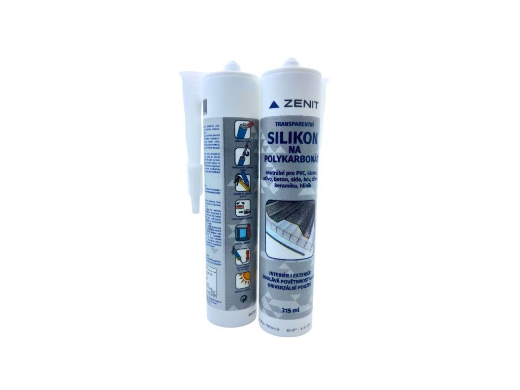 Silikon ZENIT je jednosložkový 100% neutrální silikonový tmel s nízkým modulem. Silikonový tmel odolává UV záření, je téměř bez zápachu, s neutrálním systémem vulkanizace a dobrou přilnavostí bez podkladového nátěru k široké škále povrchů. Tento silikon je přímo určen pro použítí s polykarbonátovými deskami. Škraloup, který se tvoří na naneseném silikonu, je krátce po vytvoření vysoce elastický, a umožňuje tak brzké zatížení tmelu. Navíc má tmel po vytvrzení vysokou trvalou pružnost, schopnost vracet se do původního stavu a dobrou přilnavost k odpovídajícím materiálům, a to i za extrémních venkovních podmínek. Má trvalou a dobrou přilnavost k většině podkladů s uzavřenými póry, jako je např. eloxovaný hliník, polyakryláty, polykarbonáty, lakované nebo lazurované dřevo, sklo a glazované povrchy.