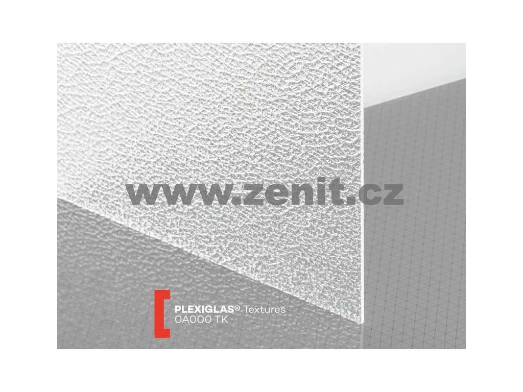 Plexisklo desky se strukturovaným povrchem typu TK připomínajícím dešťové kapky, s tloušťkou 3 mm. Materiál vhodný pro zasklení balkonů, dělící příčky, oddělování sprch, součásti nábytku, prosklení dveří... Schválené jako bezpečnostní prosklení, výborná odolnost proti povětrnostním vlivům a proti stárnutí, lehké a nelámavé, odolné vůči nárazu. Snadné opracování a montáž.