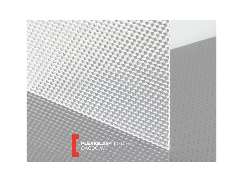 Plexisklo desky se strukturovaným povrchem typ W připomínajícím medové plástve, tloušťka 3 mm. Materiál vhodný pro zasklení balkonů, dělící příčky, oddělování sprch, součásti nábytku, prosklení dveří... Schválené jako bezpečnostní prosklení, výborná odolnost proti povětrnostním vlivům a proti stárnutí, lehké a nelámavé, odolné vůči nárazu. Snadné opracování a montáž.