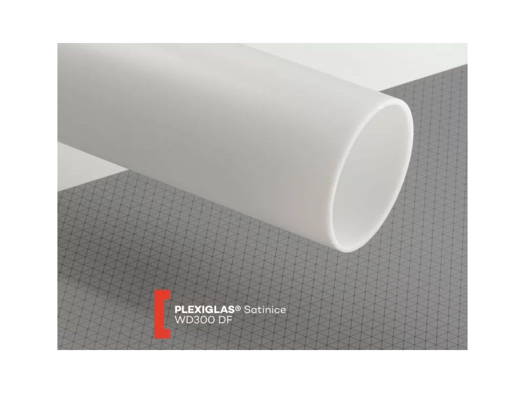 Plexiglas XT (extrudované plexi) v provedení Satinice (pískované) pro lepší rozptyl světla, barva opál/mléčná - propustnost světla cca 21%, délka 2 m. Jedná se o kulatou trubku s tloušťkou stěny 3 mm.